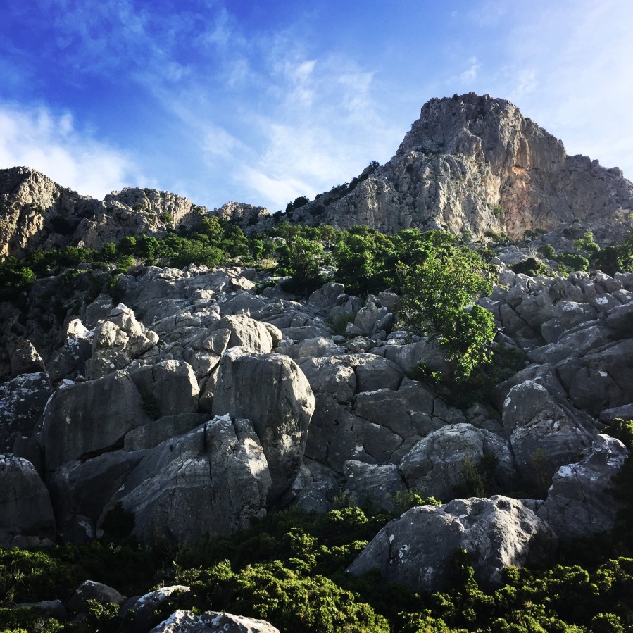 There is not a clear path towards the peak of the mountain but one of the possible routes starts from the village Choriza. From there, you get an initial south direction and via the goats path we come closer to the rocks. From that point and on we start scrambling on the rocks and while we go higher the scramble become more difficult and it almost becomes a real climb.
