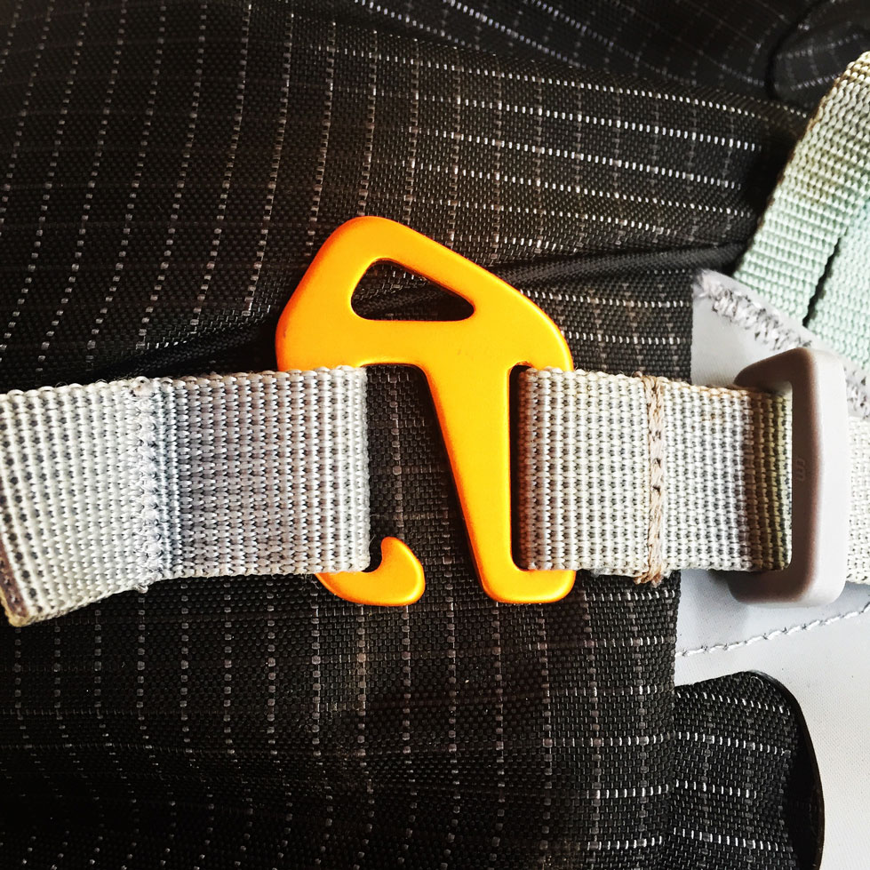 The sculpted shoulder straps and well padded hip belt again feature air mesh fabric and are designed to make the rucksack comfortable with heavy loads.  When needed, the hip belt (which includes gear loops) can be removed to leave a simple webbing belt which can be worn with a climbing harness.