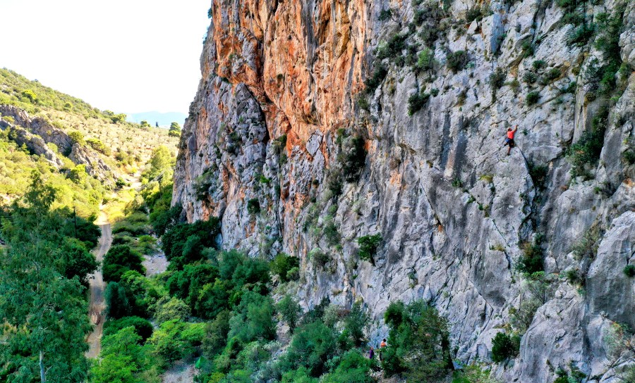 Covering a lot of spectacular ground at a moderate grade Zorro has all the makings of a modern classic, plenty of bolts, 6 pitches and 150m long. This one zigzags improbably up the cliff at 6b (5c+ obl.). Before you leave, climb Heroes, 2x30m pitches, solid 6a and probably one of the best routes in Argolis.