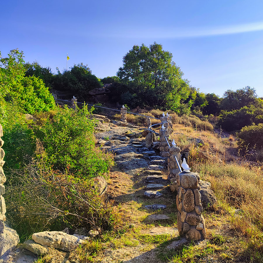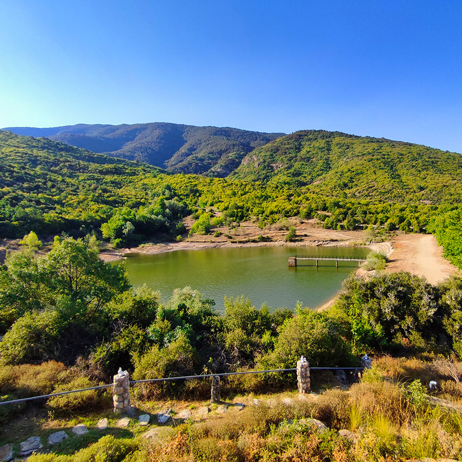 On the northern side of the lake, built on a hill, lies a quaint chapel dedicated to Agios Paisios. The path to this charming chapel is short but exceptionally scenic, winding through lush greenery and offering a peaceful walk. Once you reach the top, you’re rewarded with breathtaking panoramic views. From this vantage point, you can gaze over the tranquil waters of Kapnofyto Lake, admire the majestic Lailias Mountain to the south, and take in the rugged beauty of Orvilos Mountain to the north.