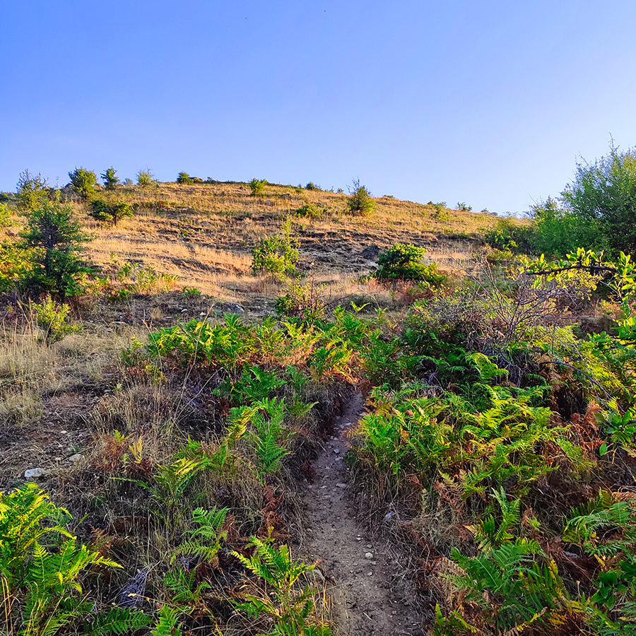 Our hike begins in the northeastern part of Mavreli, near a charming spring that marks the start of our ascent. We head up the hill above Mavreli towards the antennas, with the trail presenting a steady, slightly steep climb that remains accessible for most hikers. Once we reach the antennas, we push onward, keeping our eyes open for a less-traveled path that soon appears, leading us to the first peak of the day.