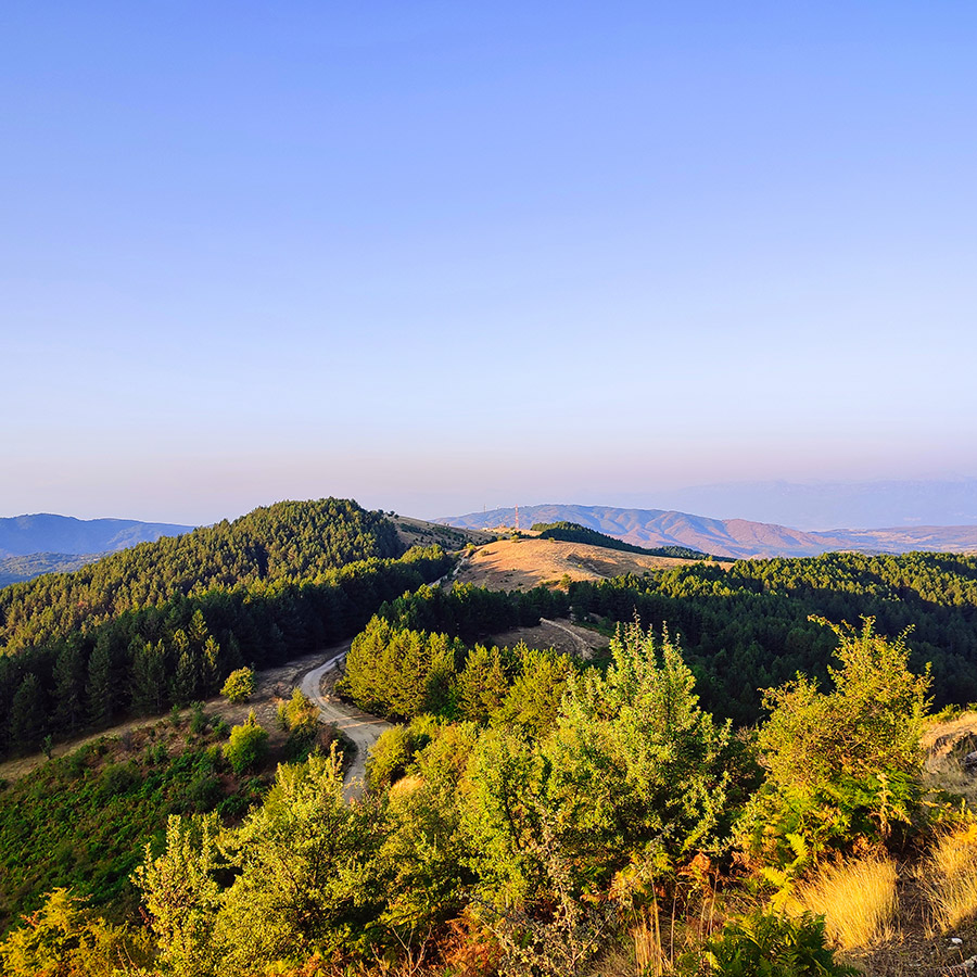 The trail winds through easy terrain, with the forest gradually giving way to alpine meadows. As you ascend, the air becomes crisper, and the views become even more expansive. On a clear day, you can see the majestic Meteora rocks to the southwest, a UNESCO World Heritage site famous for its monasteries perched atop towering rock formations.