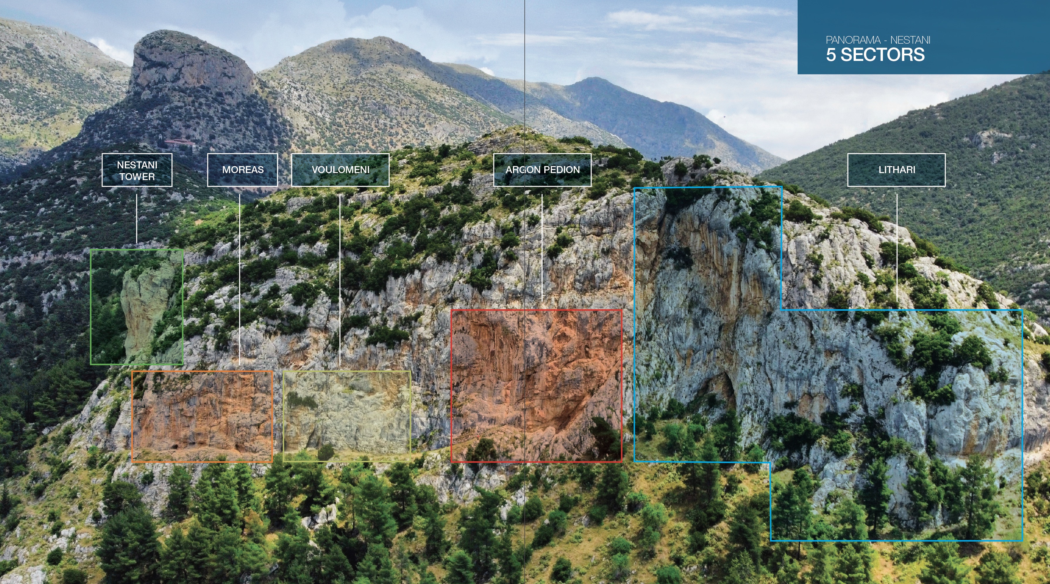 A new sport climbing crag has been developed and established near Nestani village, located approximately 15 km from Tripoli.