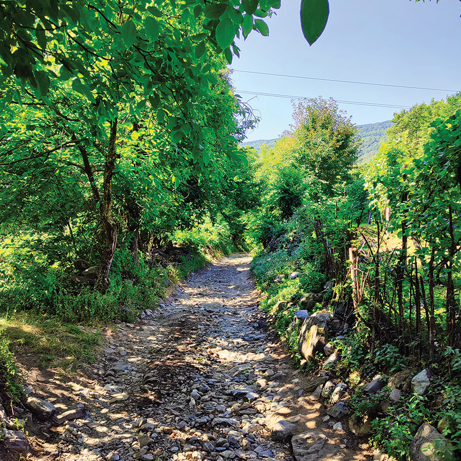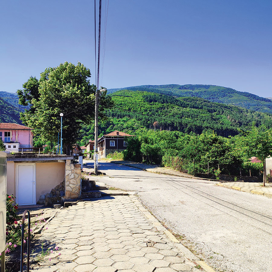 Your journey begins at the central square of Yavornitsa village, right by the trail’s information board. From here, the atmosphere immediately shifts — the quiet charm of the village blends with the promise of the shaded forest ahead. Passing by the village mosque, you make a right turn and follow the blue trail markings, which are clear and easy to spot throughout the route. The first stretch is paved and open, with the warm colors of village houses still in sight, before the path gradually narrows into the embrace of dense greenery.