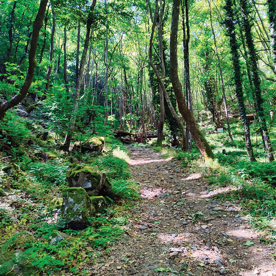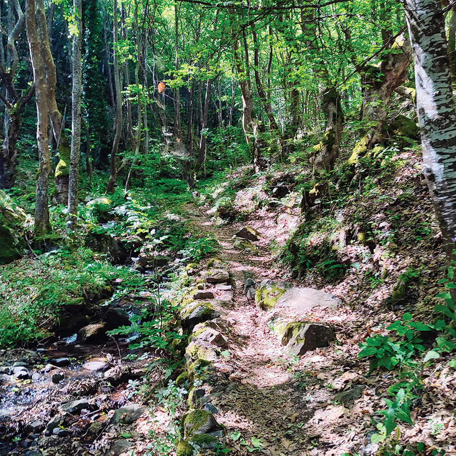 Not far from the start, you’ll come across a traditional stone-built fountain, adorned with flowers and offering fresh, cold mountain water, a small yet authentic detail that speaks of the local way of life. Soon after, the sounds of village life fade, replaced by birdsong, rustling leaves, and the occasional hum of insects. The trail is well-maintained, with minimal elevation gain, making it comfortable underfoot and accessible to hikers of all ages.