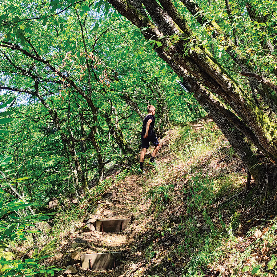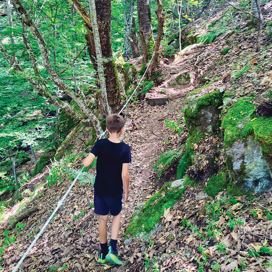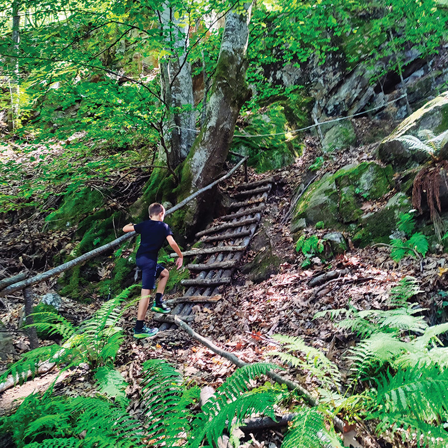 The second half of the trail introduces a touch of adventure. Certain sections require the use of ropes fixed along the path to steady your balance, and in a few spots you’ll need to climb rustic wooden ladders to reach higher ground. These features are well-maintained and add a fun, hands-on element to the hike, making it particularly engaging for children and active families.