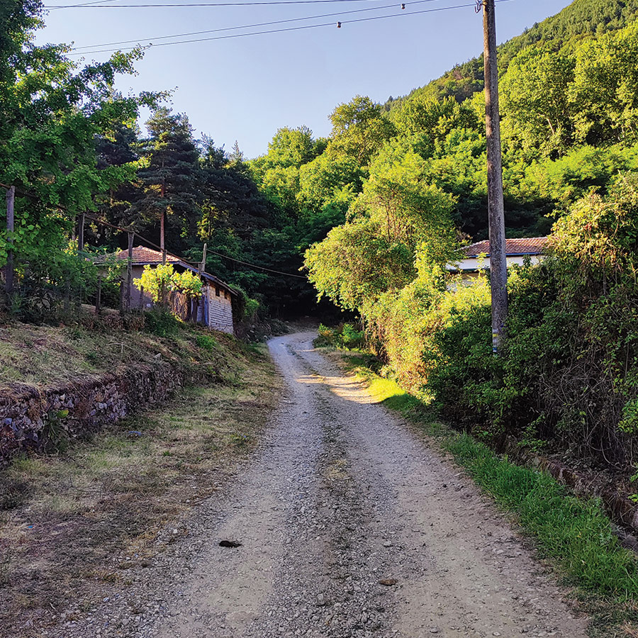 Leaving the quiet center of Skrat Village behind, the road gradually gave way to a rustic dirt path, the kind that immediately makes you slow your pace and breathe a little deeper. Morning light spilled over the slopes of the Belasitsa Mountains, casting long golden streaks between rooftops and walnut trees. The scent of damp earth and blooming summer vegetation hung in the air, a promise of the forest that lay ahead.