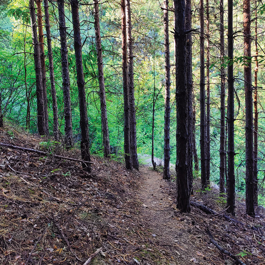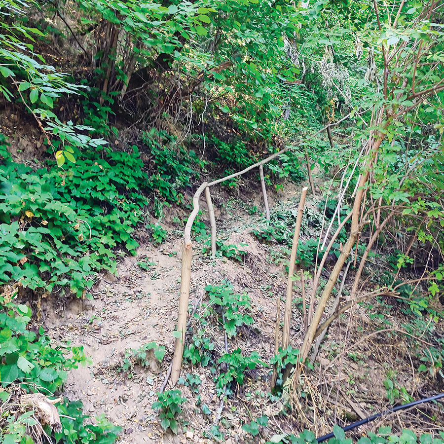 As we ventured deeper, the landscape shifted, open patches gave way to a shaded pine forest where the ground was carpeted in a soft layer of needles. A few steeper sections required a steady step, and in places, makeshift wooden railings offered a bit of extra balance. Here, the air cooled noticeably, carrying the faint, refreshing sound of running water somewhere ahead.