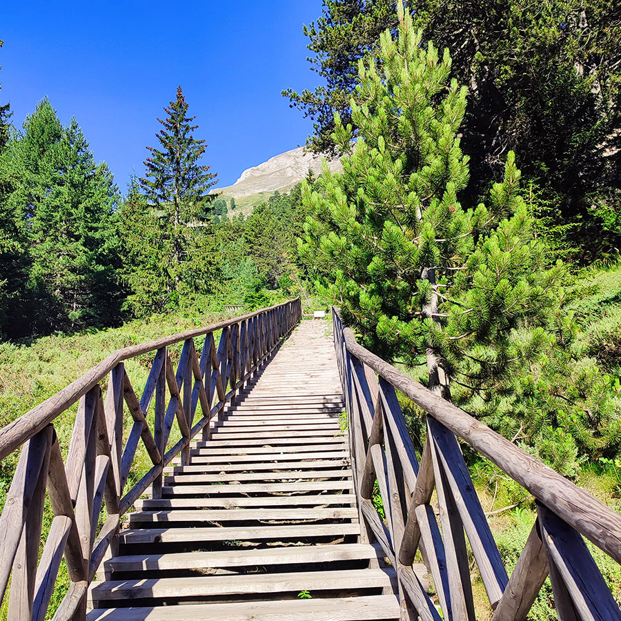The wooden trail blends naturally with Pirin’s forest environment.