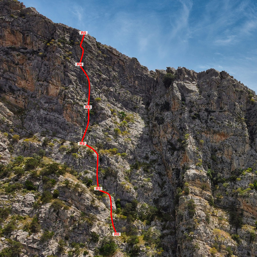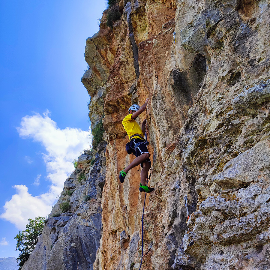 Asterope, one of the seven celestial sisters of the Pleiades constellation, lends her name to one of the most captivating multi-pitch routes of KatafykiGorge in Ermioni. Just as the mythical Asterope was transformed into a star by Zeus, this route invites climbers to rise skyward , from the rugged limestone walls of the gorge to the open blue above the Peloponnese.
